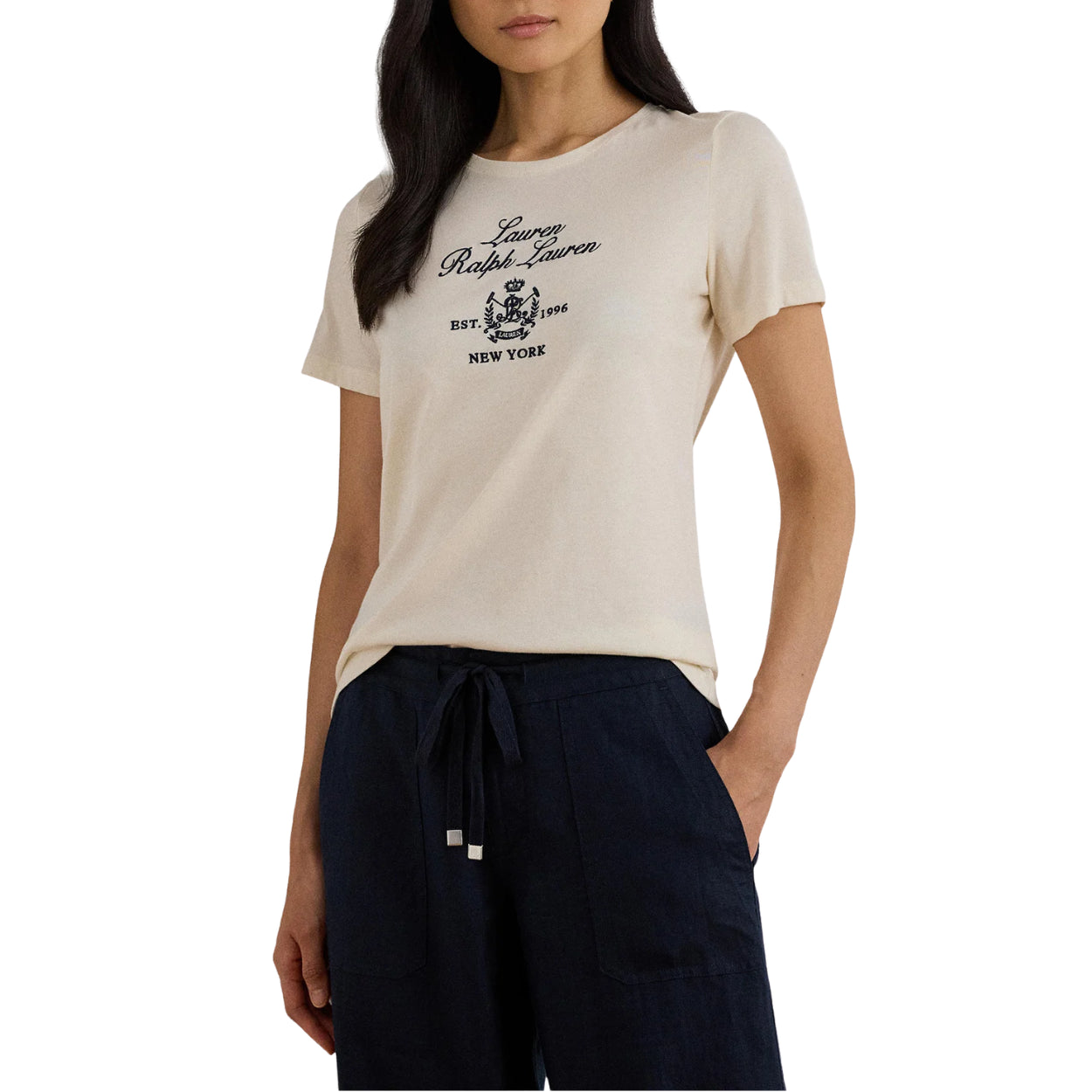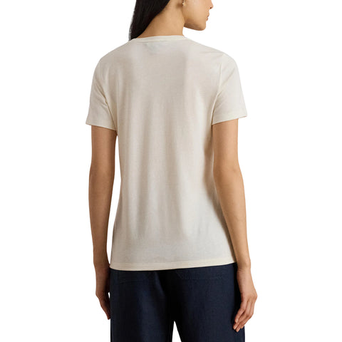 Lauren Ralph Lauren Katlin T-Shirt Donna Maniche Corte Casual Chic - Natural / XS