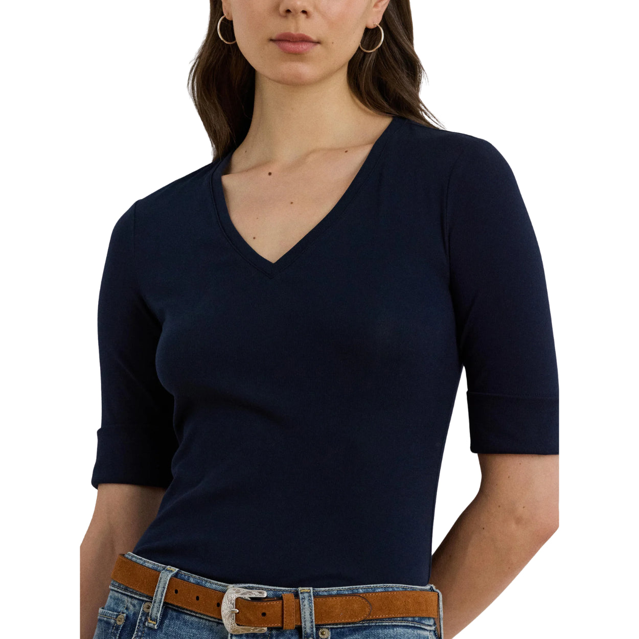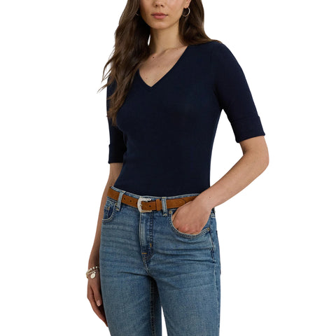 Lauren Ralph Lauren V judy-elbow sleeve-knit rfnd strtch 1x1 rib-elb-knt 200815843010