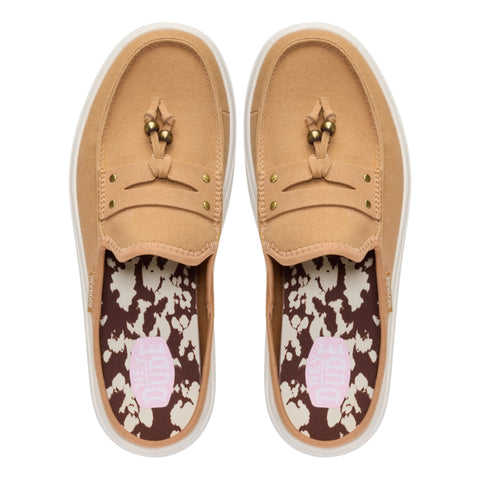 Le mule donna Hey Dude Austin Lift Penny Tassel reinterpretano il mocassino penny loafer classico con una visione contemporanea e giocosa: tomaia in suede sintetico morbido, dettaglio penny keeper sul dorso e nappa decorativa frontale che aggiunge carattere e femminilità a ogni passo. Un'estetica raffinata e polished che si muove naturalmente tra il casual chic quotidiano e le occasioni più curate, rendendola una delle proposte più versatili e originali della collezione Hey Dude.