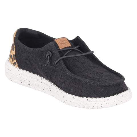 Le sneakers donna Hey Dude Wendy Wildcat portano la fantasia animalier nel DNA della silhouette più amata del brand: una slip-on leggera e traspirante con tomaia in tessuto wildcat dal motivo maculato accattivante, capace di trasformare ogni look quotidiano in un'affermazione di stile con un solo gesto. Il tallone in tessuto coordinato completa l'estetica con coerenza, mentre i lacci elastici e il sistema easy-on garantiscono una calzata immediata e avvolgente, senza alcuno sforzo.